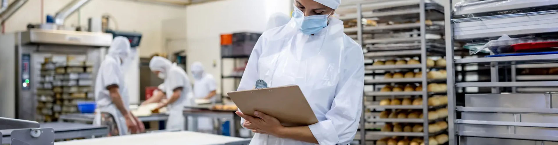 It involves manufacturing, packaging, quality control, and handling of food products in industrial facilities.